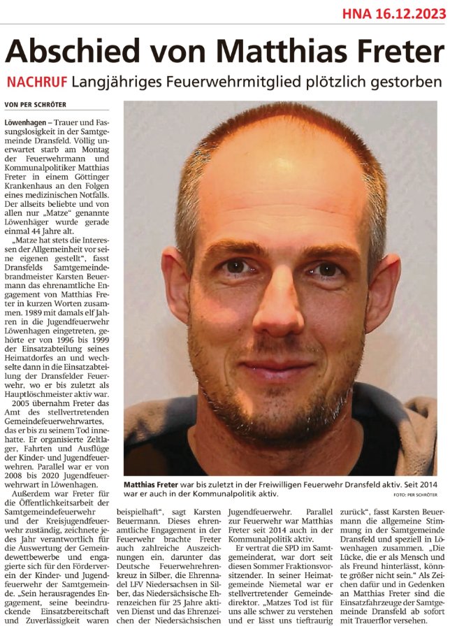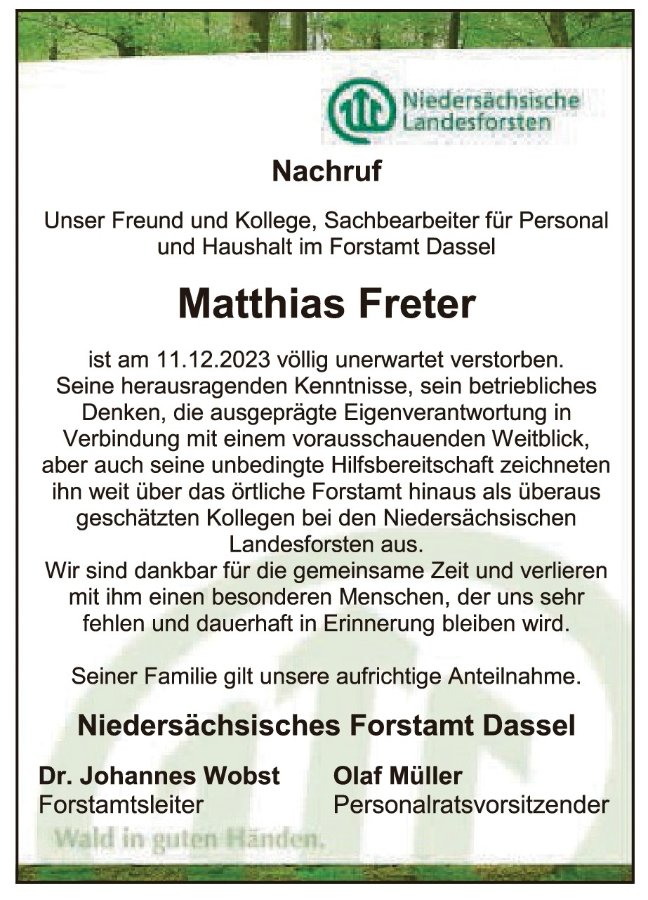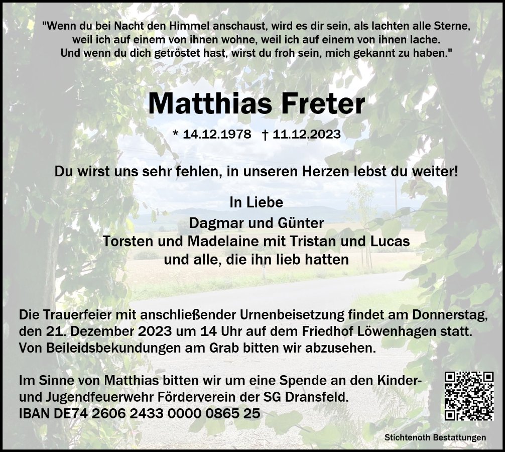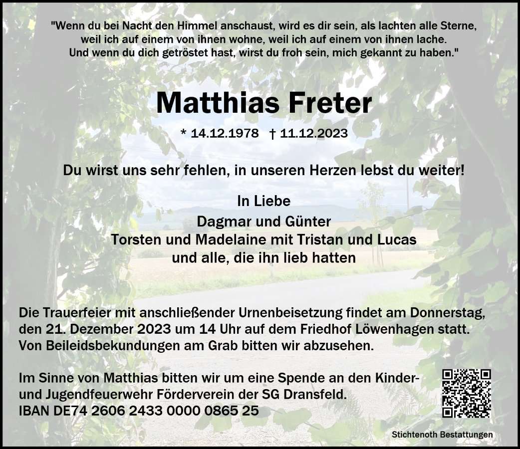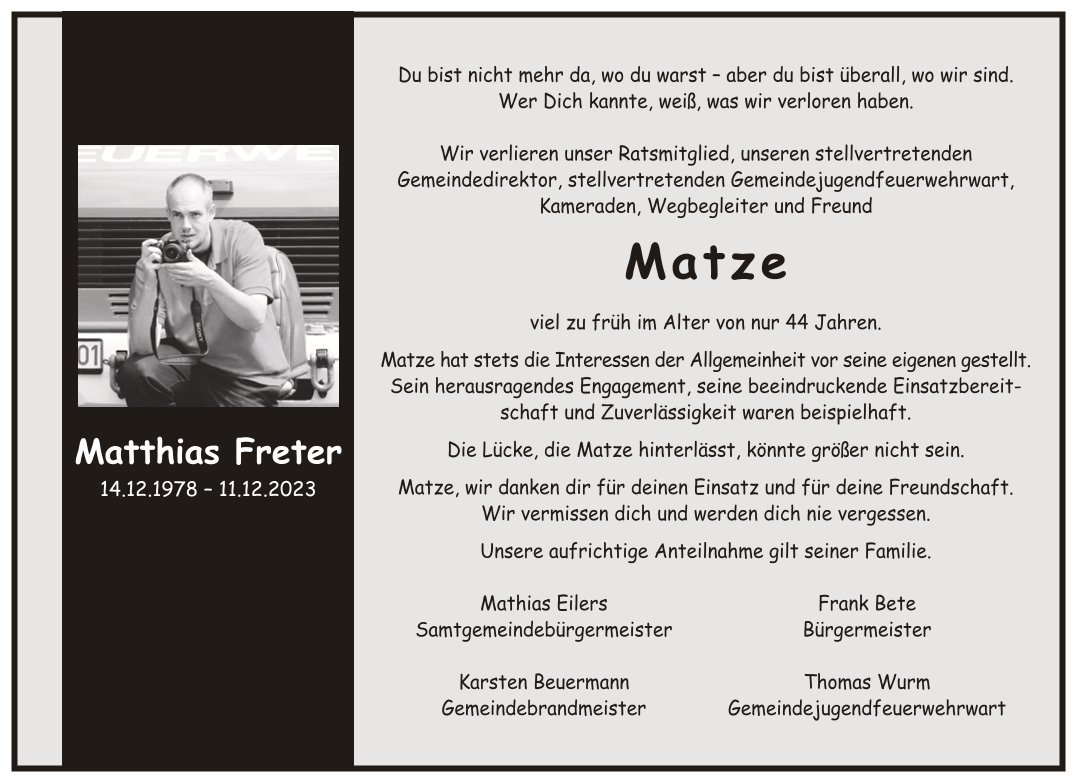 Matthias Fretergestorben am 11. Dezember 2023