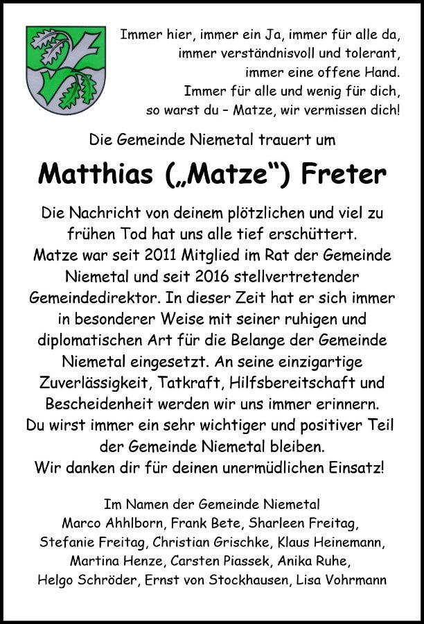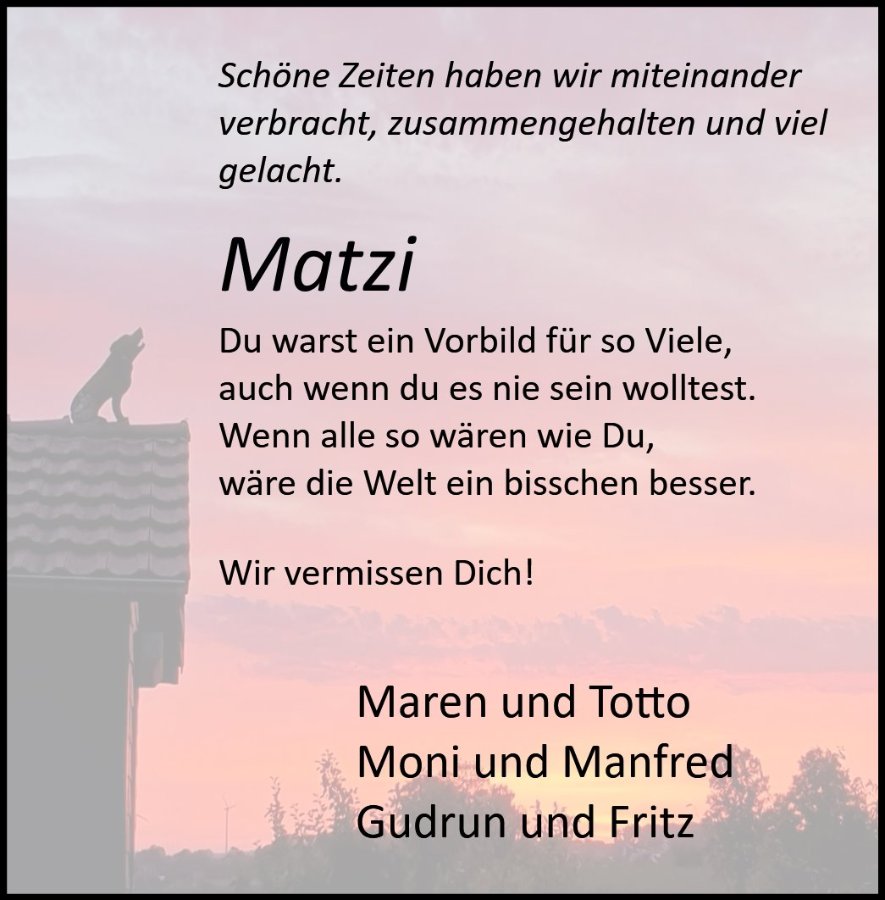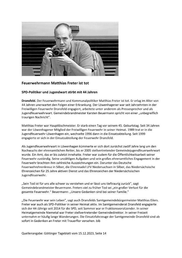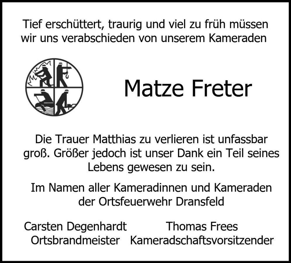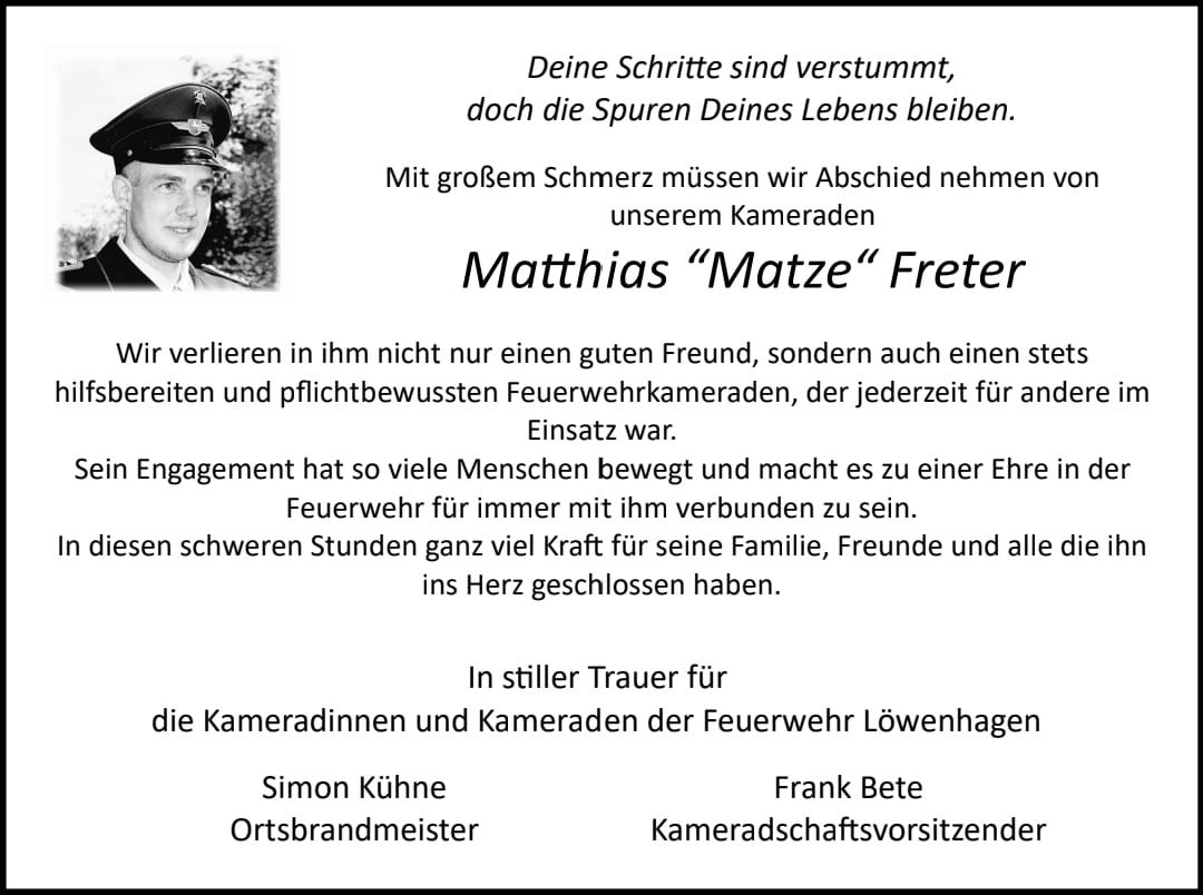 Matthias Fretergestorben am 11. Dezember 2023